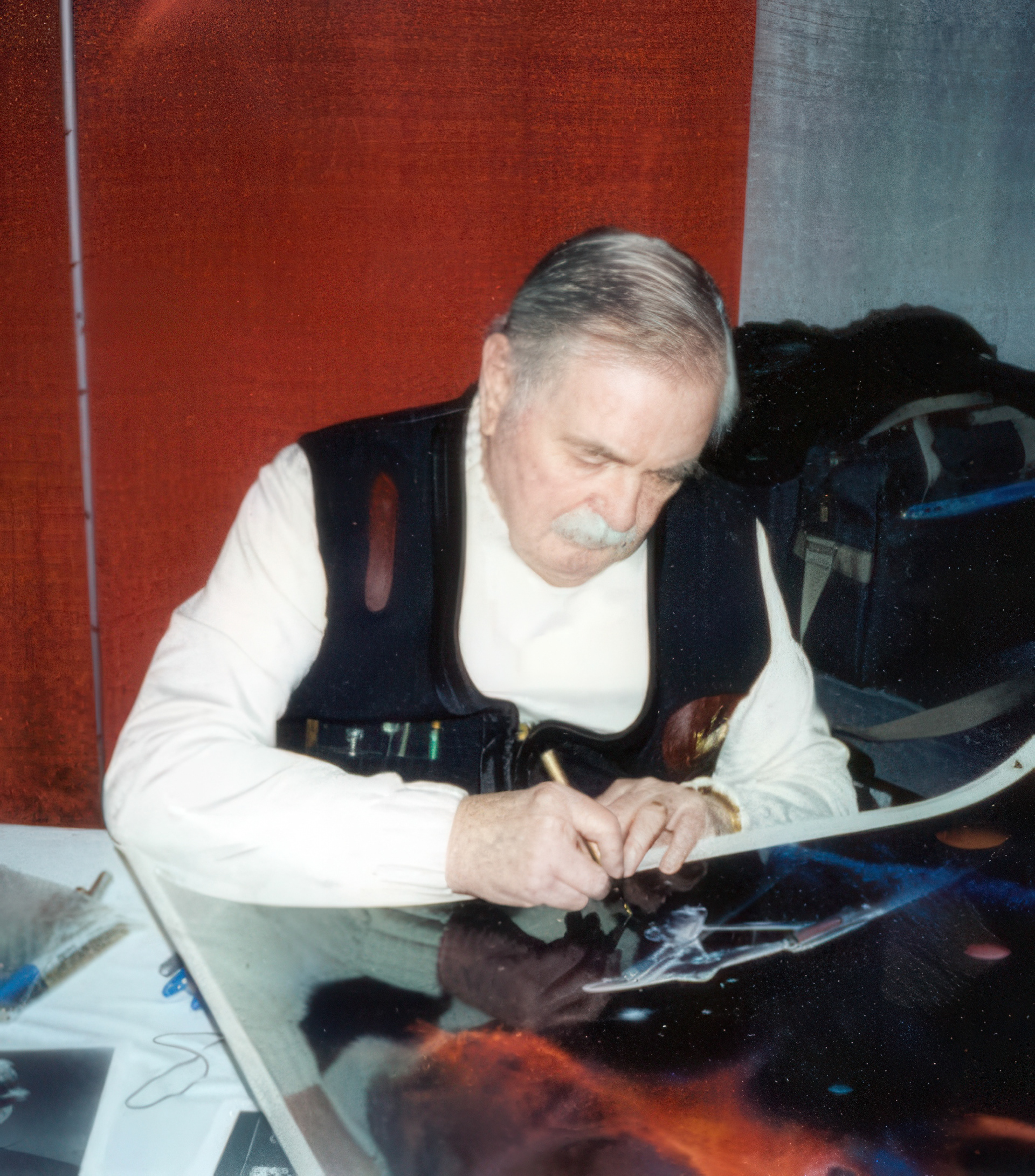 GENE RODDENBERRY ATTENDING A PRIVATE SHOWING OF MICHAEL DAVID WARD'S ORIGINAL PAINTINGS AT THE VANGUARD GALLERIES IN BEVERLY HILLS - CIRCA 1991