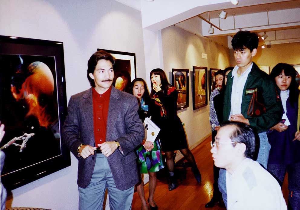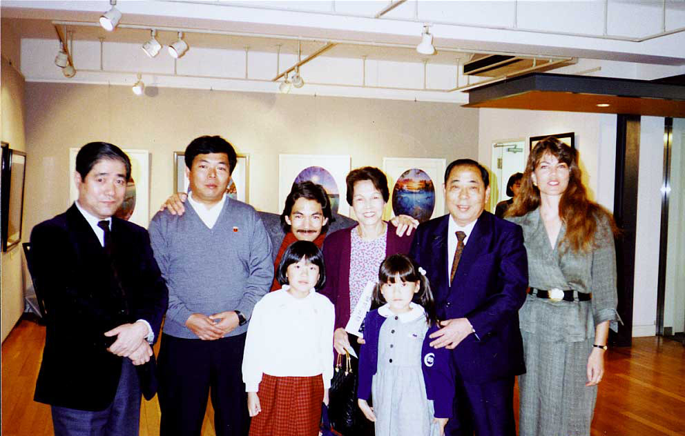 MICHAEL, HIS WIFE, ARLENE, PROMOTER MR. KOBAYASHI, AND MICHAEL'S JAPANESE FAMILY ATTENDING GALLERY EXHIBITION OF MICHAEL'S WORK