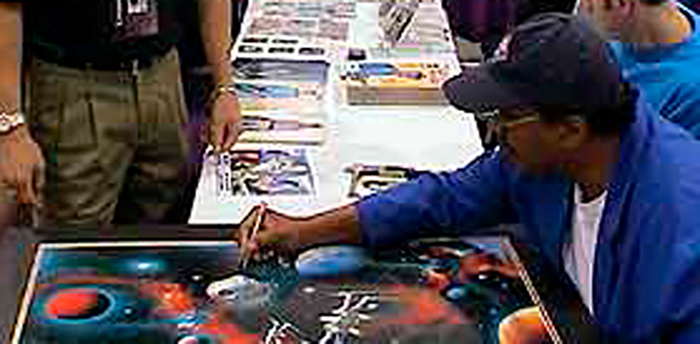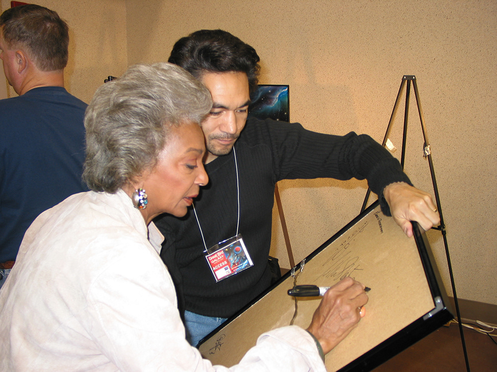 NICHELLE NICHOLS SIGNING MICHAEL'S ORIGINAL PAINTING - THE GREAT BIRD OF THE GALAXY