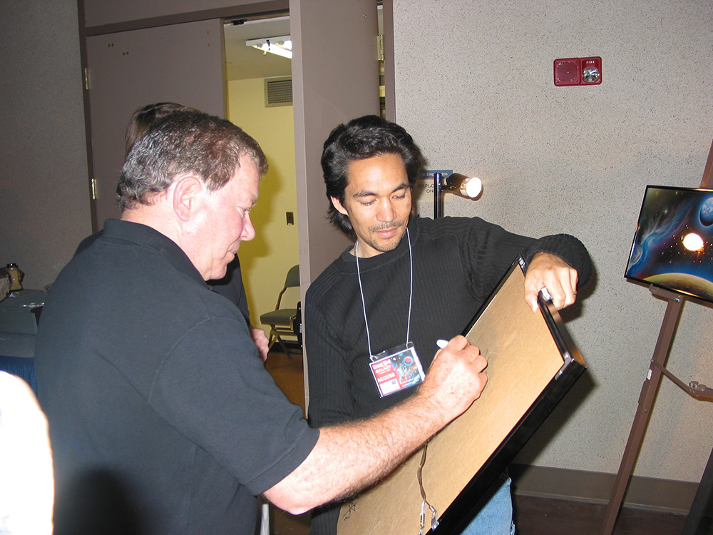 WILLIAM SHATNER SIGNING MICHAEL'S ORIGINAL PAINTING - THE GREAT BIRD OF THE GALAXY